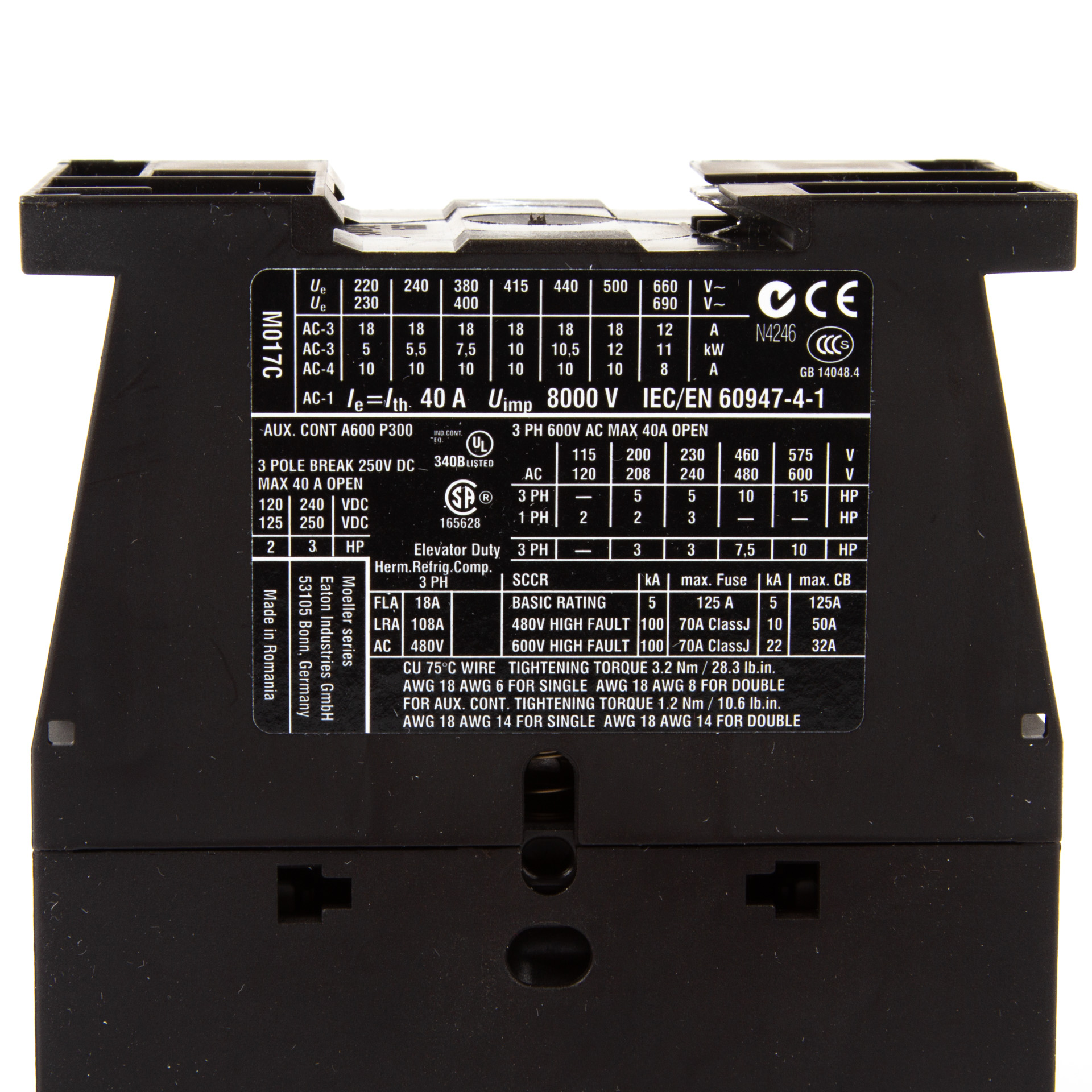 Eaton Leistungsschütz DILM17-10, 110V/50HZ, 120V/60HZ, 7.5 kW